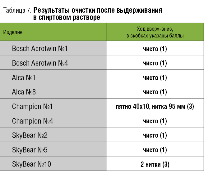 Лучше всех старение в спирту перенесли щетки Bosch: резиновая лента нисколько не покоробилась, у щеток Alca на ленте появилось по одной волне, у Champion и SkyBear лента покоробилась несколькими волнами.