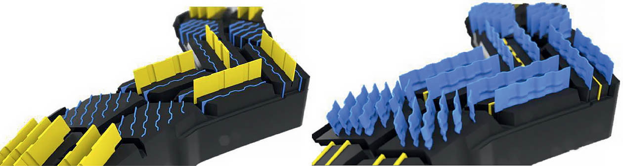 П-образные ламели (слева) и ламели переменной толщины (справа)