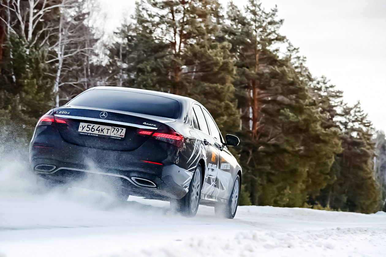 «Фрикционку» ArcticControl мы проверяли на дорогах общего пользования на полноприводных седанах Mercedes-Benz E-Class — нам с коллегой по экипажу достался бензиновый E 220 4Matic. На асфальте (как в городе, так и на шоссе) новые «липучки» проявили себя как весьма тихие и комфортные: подавляющее большинство городских и «трассовых» неровностей эти шины «фильтруют» легко и незаметно для обитателей салона. В целом модель ArcticControl вполне достойна того, чтобы ставить ее на автомобили «Большой немецкой тройки».