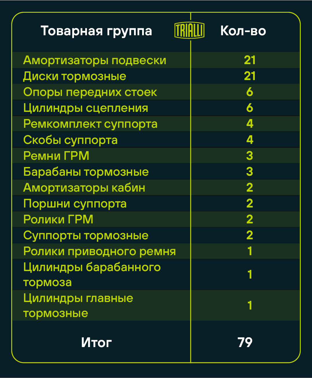 Бренд Trialli выпустил новые запчасти для легковых иномарок и грузовых автомобилей.