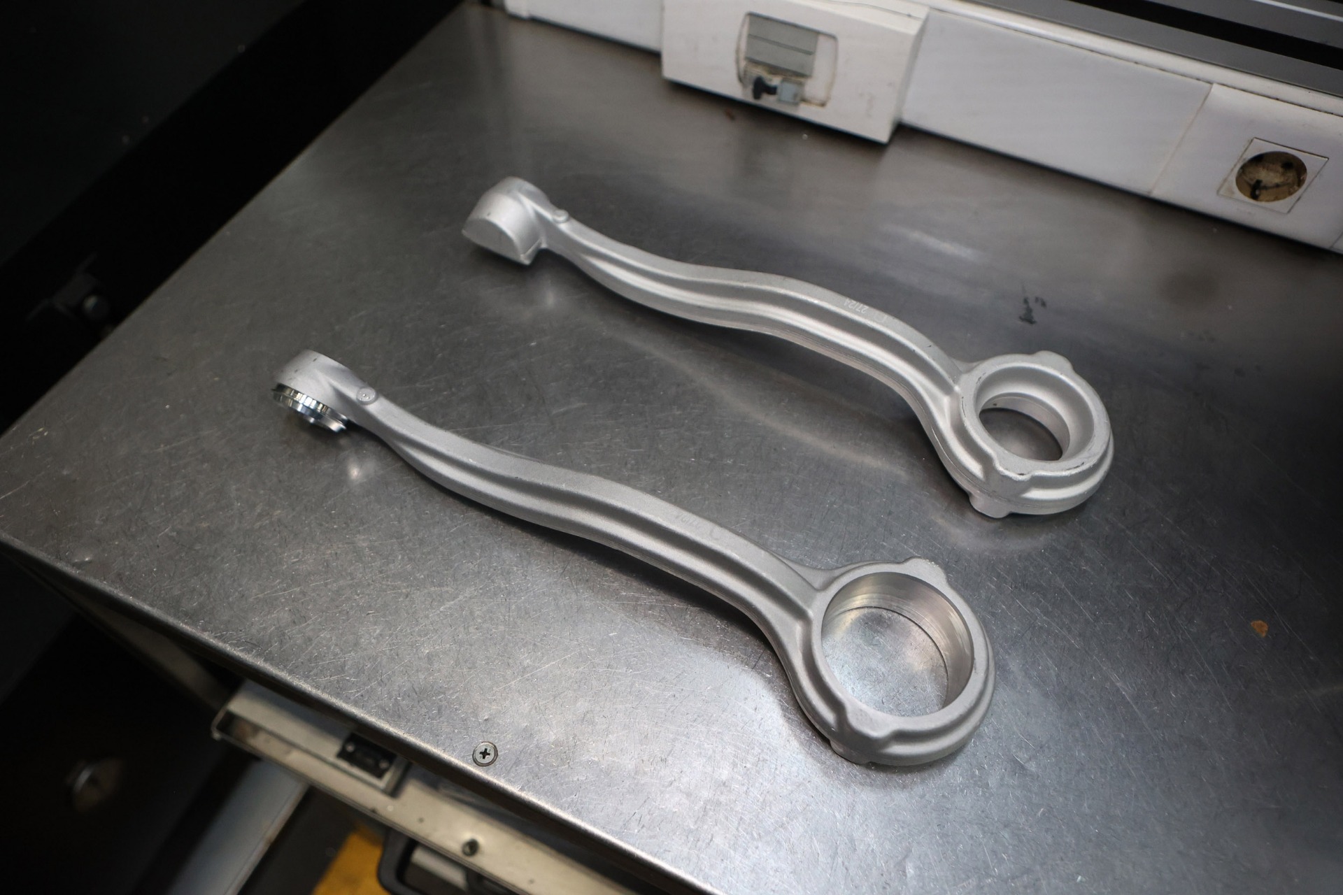 Далее заготовка отправляется к оператору, который помещает ее в станок и, ориентируясь на техническое задание, вносит в него параметры, по которым он и будет обрабатывать будущую запчасть. На примере рычага это значит, что станок будет вырезать в заготовке отверстия под сайлентблоки по размерам, указанным оператором. В задачу этого же оператора входит и регулярная проверка качества на этом этапе. Каждый определенный отрезок времени деталь вручную проверяется на соответствие заявленным размерам.