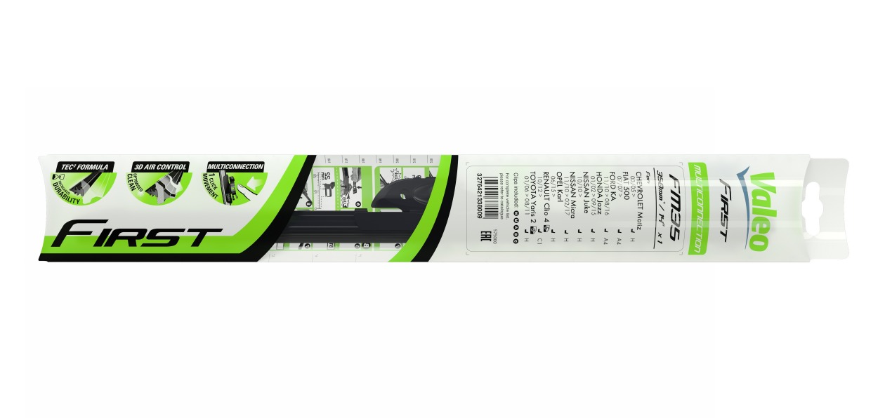 В линейку Valeo First Pyramid Multiconnection с универсальными креплениями добавлены адаптеры на два типа рычагов, которые применяются на автомобилях концернов BMW и Volkswagen AG, а также щетка длиной 750 мм, которая устанавливается на Citroën C4, C4 Picasso, DS4, DS5; Ford S-Max, B-Max, Galaxy II, Transit; Оpel Zafira; Peugeot 308, 3008, 5008; RENAULT Espace V, Scénic III.