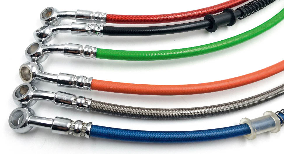 Тормозные шланги как деталь гибкая в большинстве случаев могут быть заменены на универсальные той же длины без потери рабочих качеств. Но стоит учитывать, что стандартные места креплений и прокладка рассчитаны на шланги определенного диаметра и упругости. Применение даже качественных деталей, но с отличающимися параметрами может быть небезопасным из-за вероятности повреждений. Установка так называемых армированных шлангов в большинстве случаев влечет за собой изменение параметров работы тормозной системы в лучшую сторону, но эти шланги значительно жестче обычных и не всегда могут работать с теми же радиусами закруглений и длиной петли, требуя изменения тормозной системы для нормальной установки. Сами же шланги такого типа обычно имеют более развитый многослойный металлокордный каркас, чем стандартные, которые, по сути, также являются армированными. Следствием применения дополнительных слоев корда является заметно меньшее изменение внутреннего объема при высоком давлении и большая стойкость к механическим воздействиям извне.